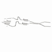 The MagnaFlow Street Series Crossmember-Back Performance Exhaust System 15894 brings enhanced engine sound and dyno-proven performance to your muscle car with a healthy helping of our deep, resonant signature exhaust note at Moderate exterior and Mild interior sound levels. Thanks to its durable, corrosion resistant stainless steel design, this exhaust system will handle whatever tarmac you decide to leave your mark on. This performance exhaust kit features a crossmember-back layout designed to replace your exhaust system from the crossmember on back. With its fast-flowing, mandrel bent 2.5in. main piping and 2 Straight-Through mufflers ending in a Multiple Exit Options exit with 2.75in. Polished Weld-On Single Wall Turndown Cut Edge tips, your muscle car will be sounding as awesome as it looks. Extensive 3D scanning during development has resulted in a direct-fit design that you can easily install yourself. 15894 is produced using CNC precision robotic manufacturing techniques and is backed by MagnaFlow's limited lifetime construction warranty.