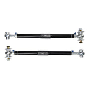 BMW F2X/F3X Rear Toe Arms (RTA) increase stability and response by eliminating bushing deflection while providing an increased range of rear toe adjustment, necessary for lowered cars or for performance alignments. Even small changes to ride height and camber will affect toe settings and the wide range of adjustment allows you to maximize grip on a track car and extend tire life on a street car. The factory rear toe arms utilize an eccentric bolt and washer for adjustment and lack the precision and range that SPL Parts Rear Toe Links offer. Black Anodized and gun drilled 2024 Aluminum main links along with our 360 degree Rotating Clamp design allow for quick and precise adjustment. 3 piece FK Bearings Rod Ends manufactured in Connecticut feature a Teflon liner to provide quiet operation, low friction, smooth articulation, and eliminates bushing deflection under load. The PTFE liner is chemically bonded to the inner diameter of the race. The liner offers a very high load carrying capacity and has greatly increased dynamic wear characteristics. The operating temperatures of the liner ranges from -65º